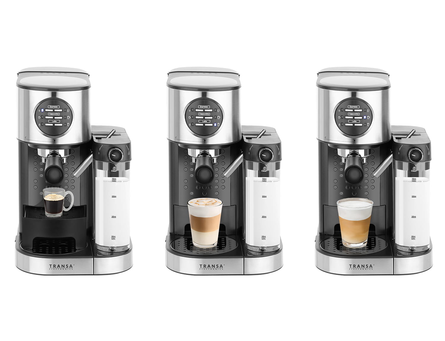 Ekspres ciśnieniowy do kawy MultiCoffee 1470W 20 bar Transa Electronics® to urządzenie, które umożliwia przygotowanie pysznej sypanej kawy pod ciśnieniem. Dzięki niemu możesz wybierać spośród trzech rodzajów kawy: Espresso, Cappuccino i Latte.